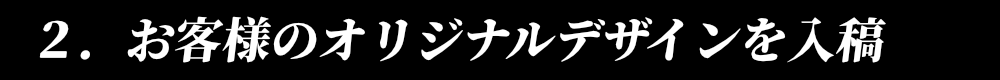 頂いた見積依頼書とお客様のオリジナルデザインをもとに、弊社よりお見積りをさせて頂きます。内容等に相違が無ければご入金を頂き、その後お客様のオリジナルデザインのラフ案を送らせていただきます。細かな部分などの修正などを行っていきます。
